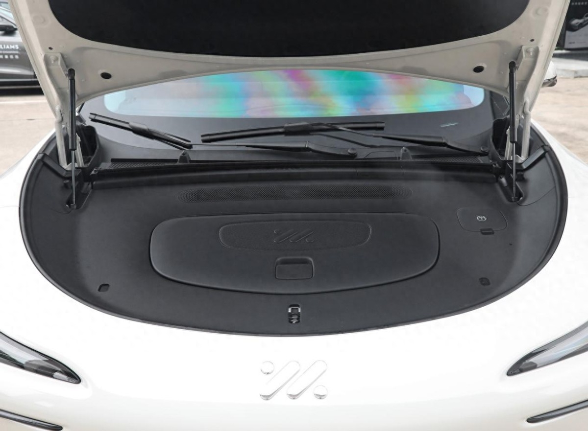 车侧流畅的线条延伸到尾部后形成了更为高耸而动感的尾部轮廓,后备厢顶部的鸭尾轮廓格外明显,同时在扰流板下方还隐藏着更具个性化的环状贯穿灯带,整体轮廓呈现出梯形样式,开口式的结构有点形如阿斯顿马丁,提升了车尾的立体感和视觉效果。后包围上方同样带有一根折痕处理,清晰地划分出上下区域,车底采用了黑色护板覆盖,让尾部保持了简约大气的风格。