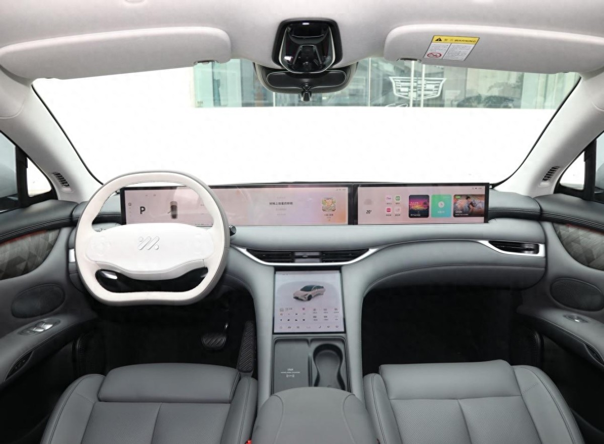 智己LS6在内饰设计同样出色,圆润的台面和门板处结构让车内充满了环抱式氛围,流畅典雅的线条勾勒也让视觉感更为柔和,中控台使用了深浅搭配的软性面料覆盖,同时在细节处加入了镀铬饰条和木纹饰板装饰,展现出更为豪华的氛围感。台面上方配有一块联通式一体屏,不仅提升副驾驶的娱乐体验,还为驾驶者提供更全面的导航和驾驶信息。