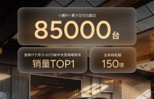 11月10日,小鹏汽车宣布,旗下的小鹏P7+车型累计交付已超过8.5万台,连续11个月15-20万级中大型纯电…